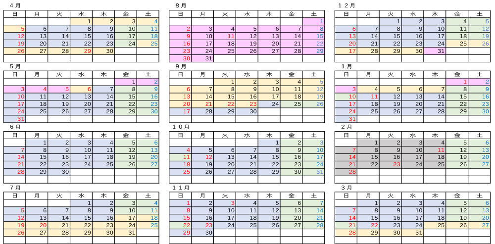※カレンダーの見方